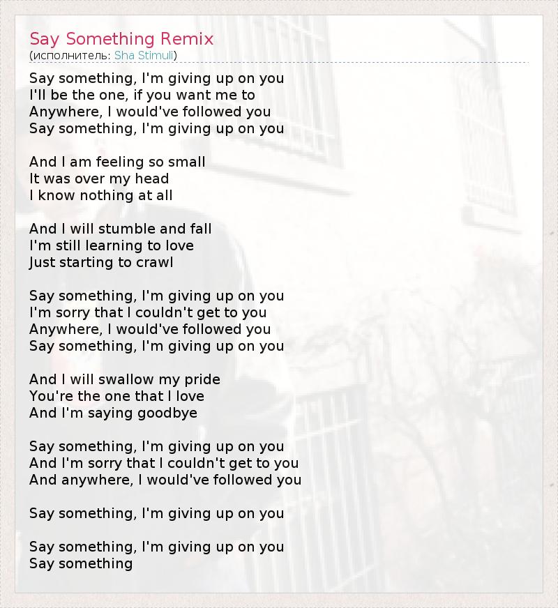 А как ты думаешь, о чем песня "Say Something Remix" ?
