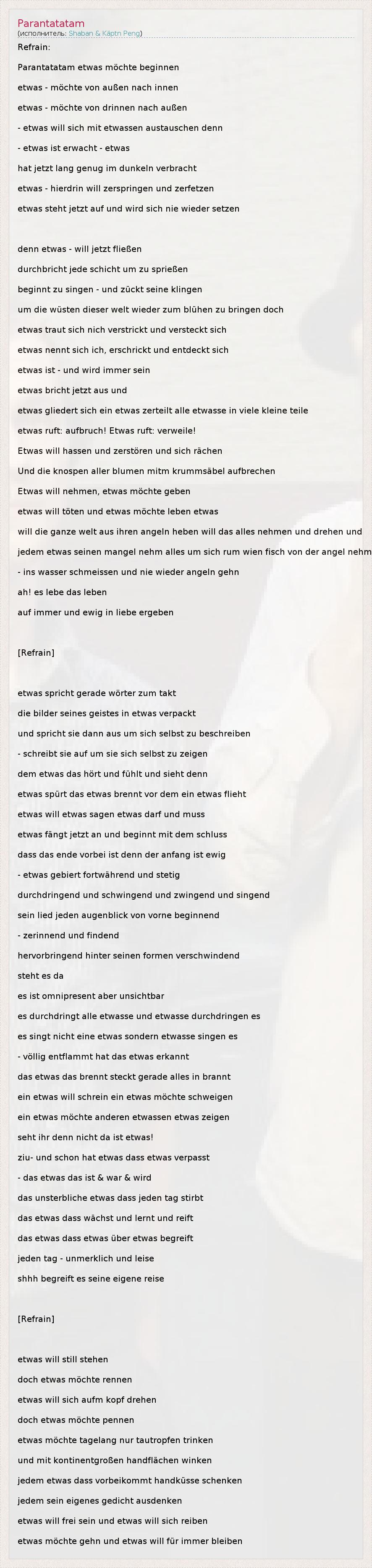 А как ты думаешь, о чем песня "Parantatatam" ?
