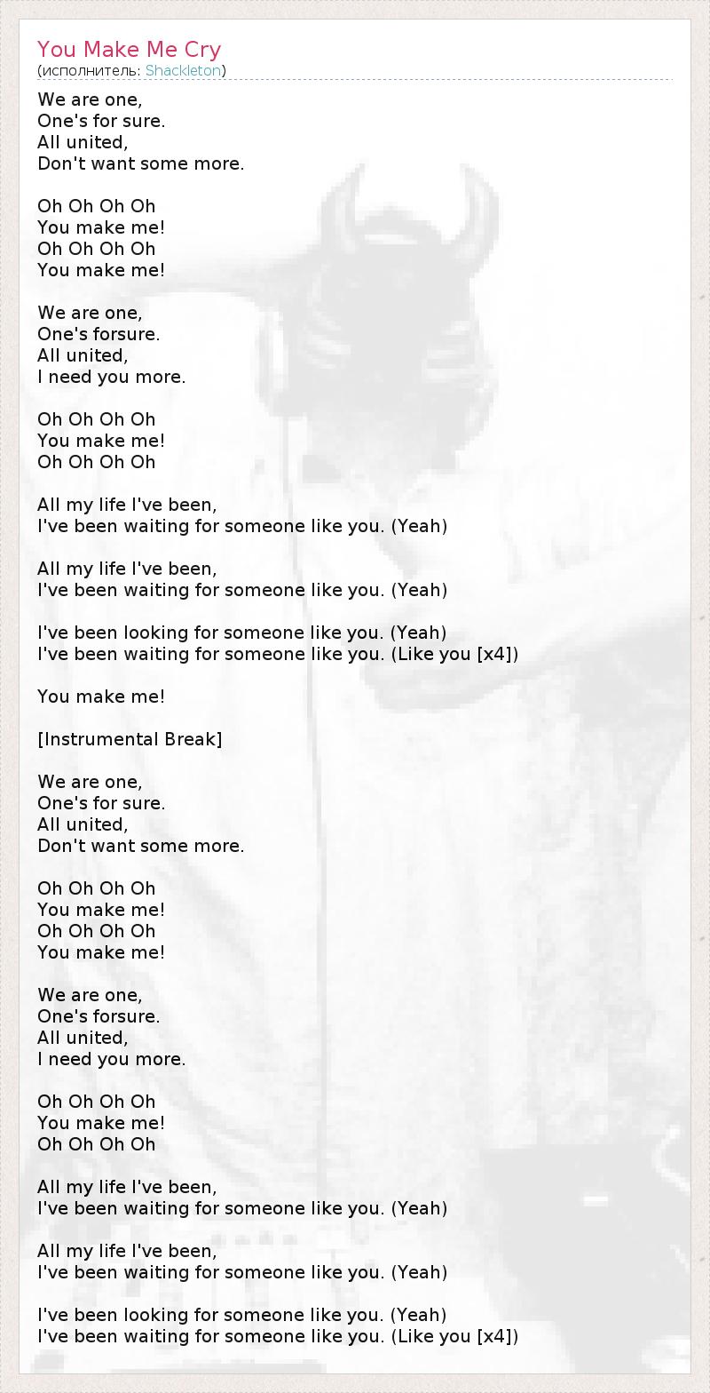 А как ты думаешь, о чем песня "You Make Me Cry" ?
