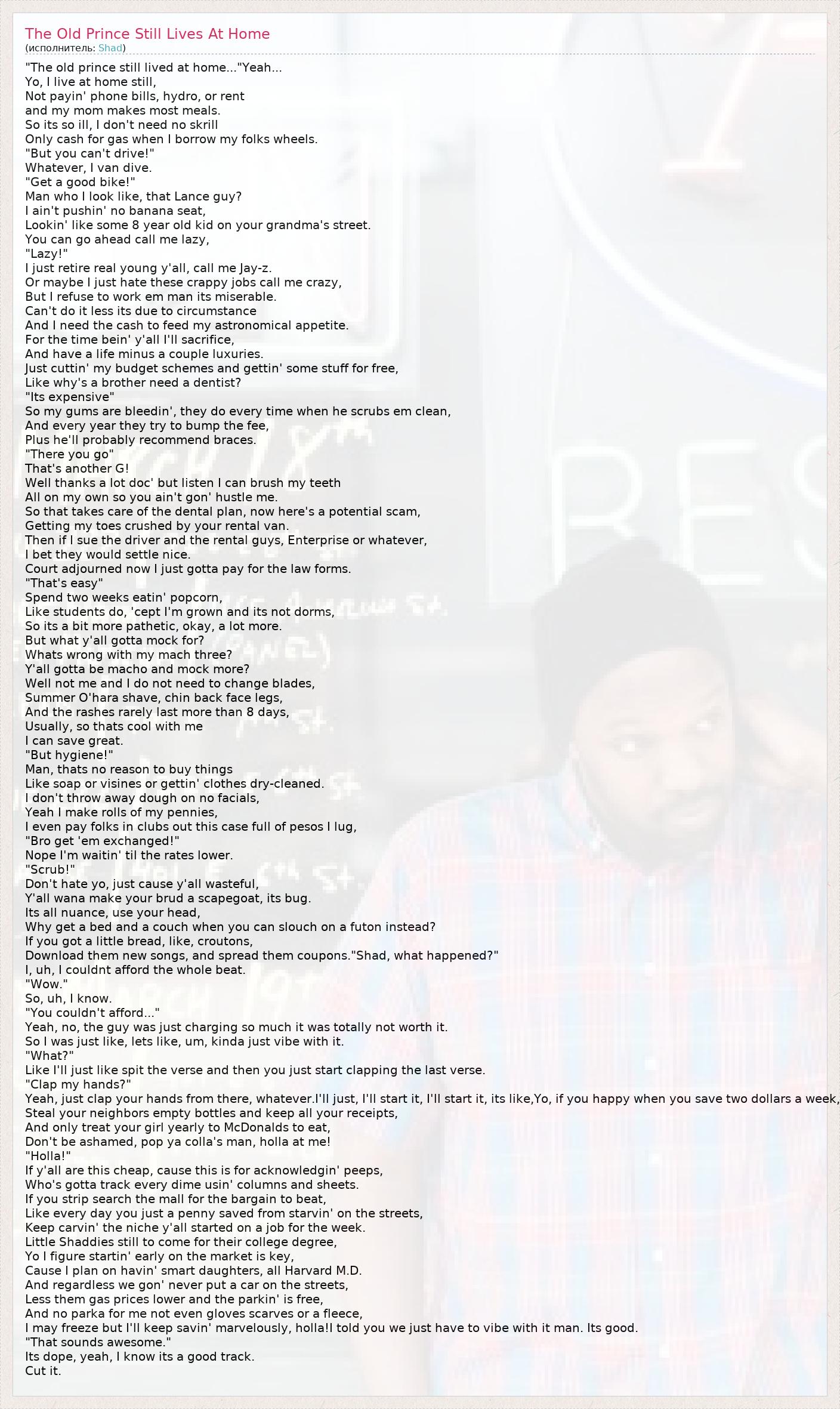 ГлавнаяИсполнителиShadThe Old Prince Still Lives At Home