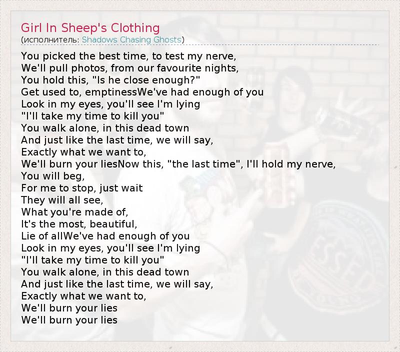 А как ты думаешь, о чем песня "Girl In Sheep's Clothing" ?