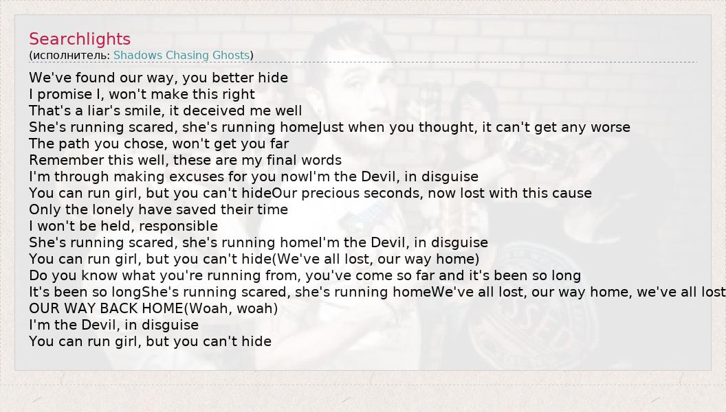 It's been so longShe's running scared, she's running homeWe've all lost, our way home, we've all lost