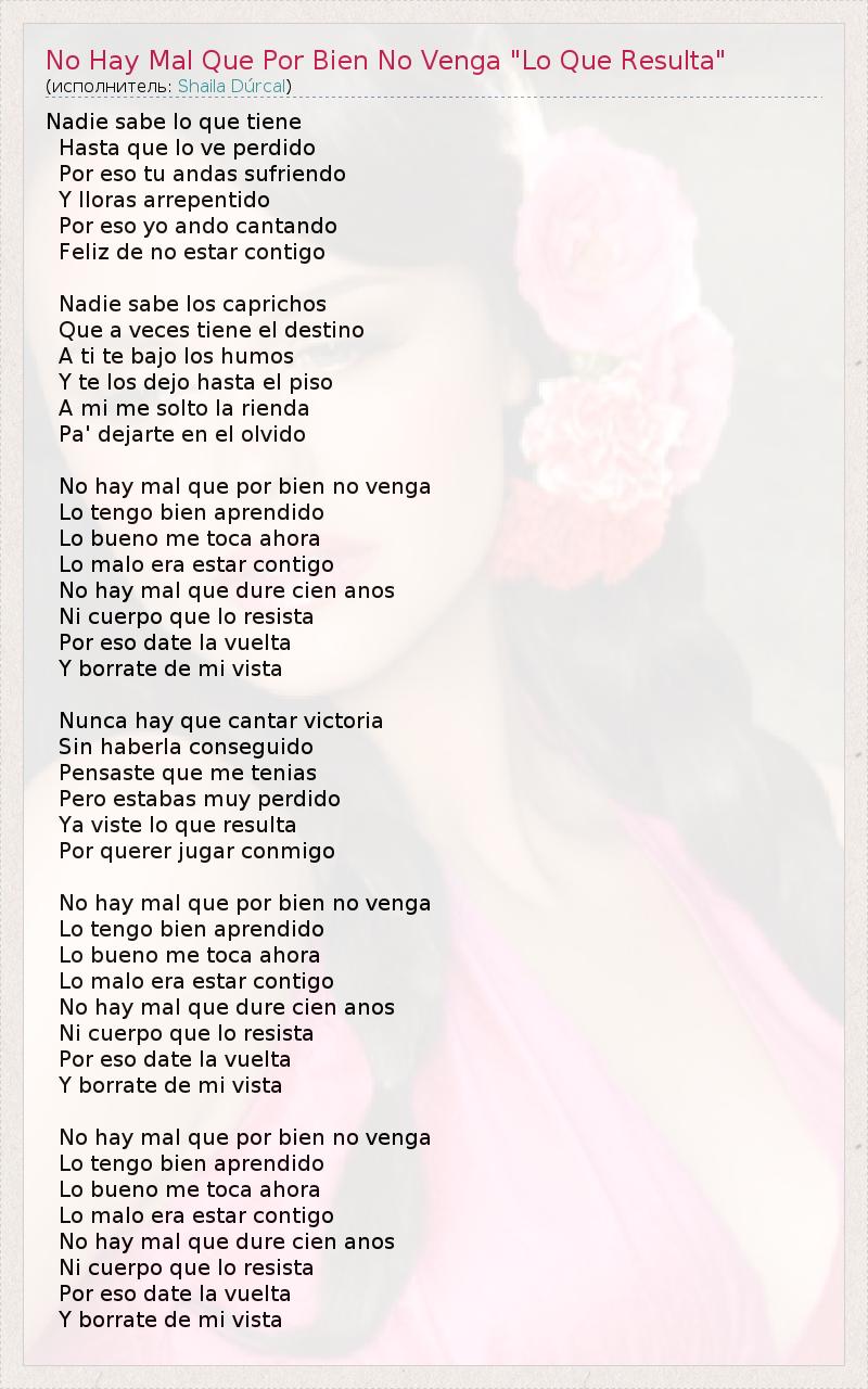 А как ты думаешь, о чем песня "No Hay Mal Que Por Bien No Venga "Lo Que Resulta"" ?