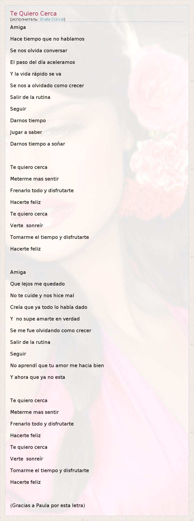 А как ты думаешь, о чем песня "Te Quiero Cerca" ?