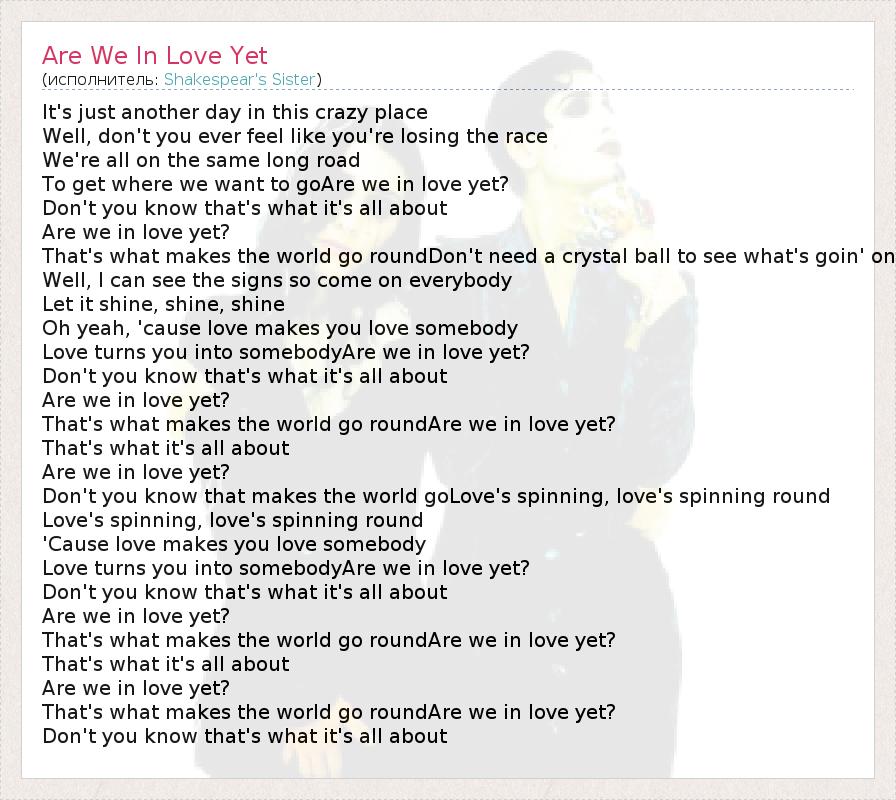 А как ты думаешь, о чем песня "Are We In Love Yet" ?