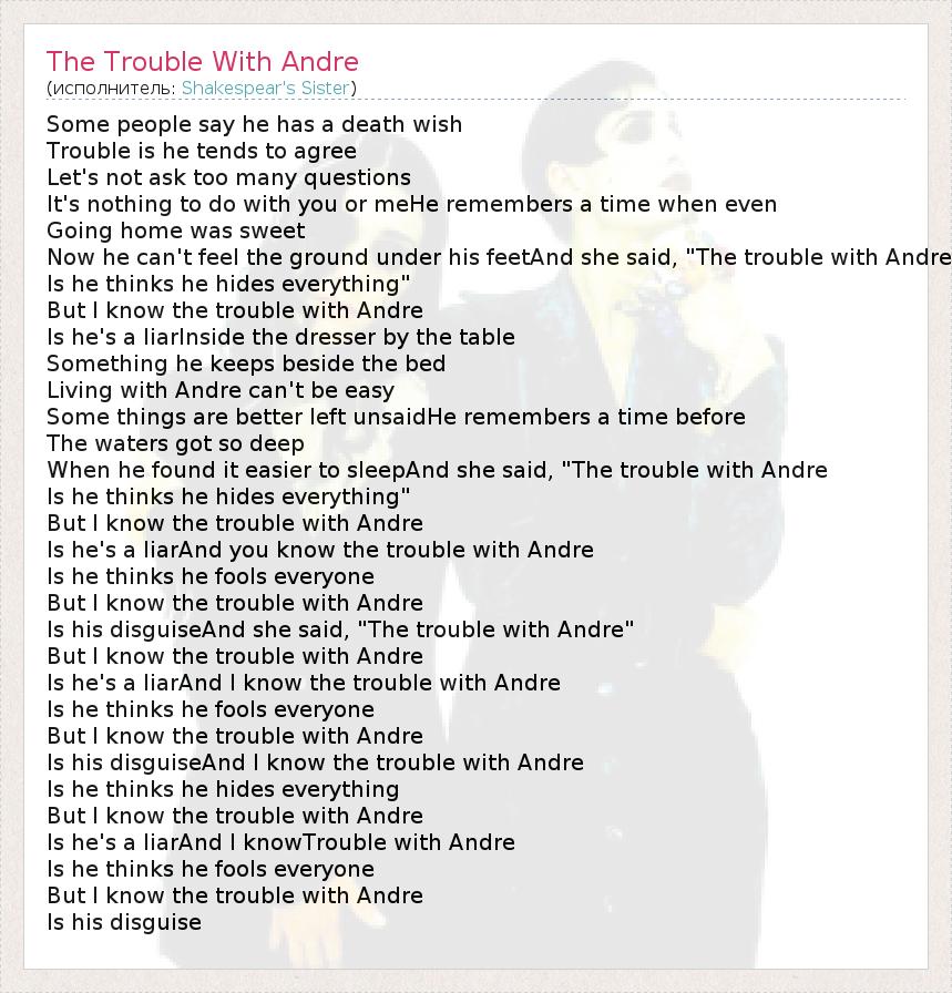 А как ты думаешь, о чем песня "The Trouble With Andre" ?