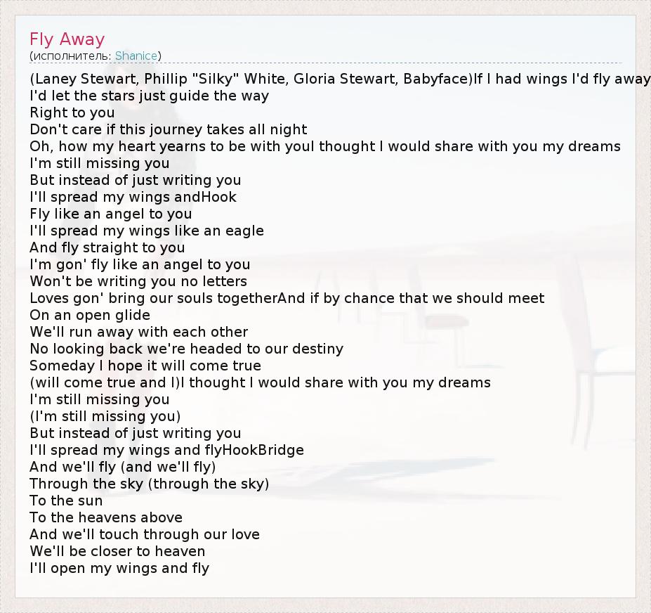 (Laney Stewart, Phillip "Silky" White, Gloria Stewart, Babyface)If I had wings I'd fly away