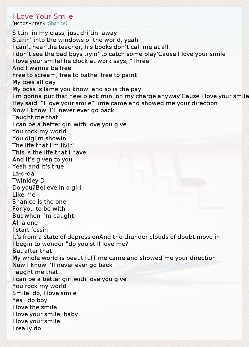 А как ты думаешь, о чем песня "I Love Your Smile" ?