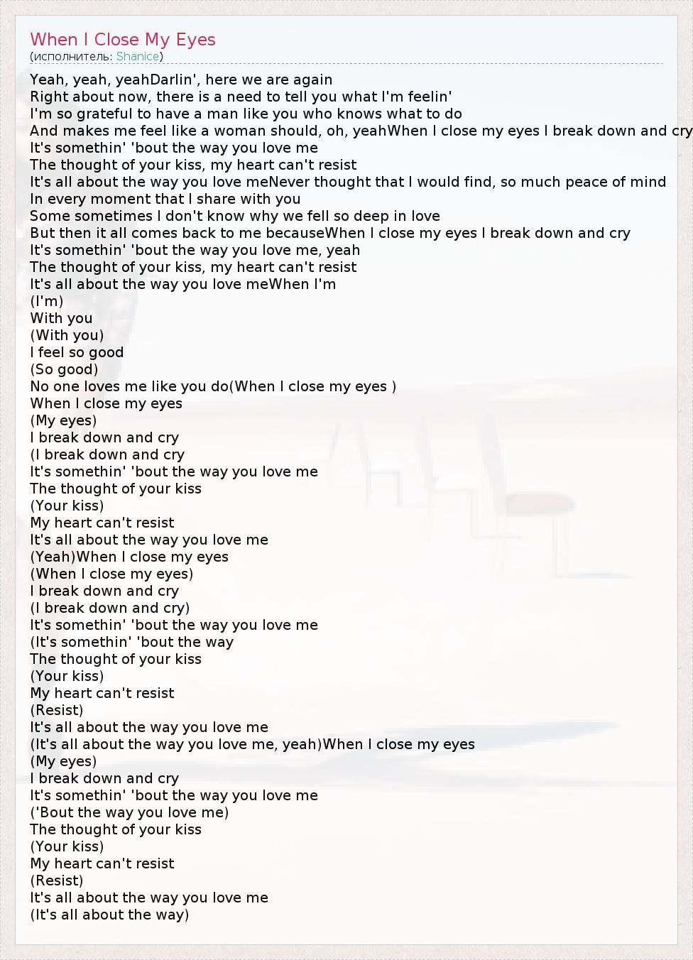 А как ты думаешь, о чем песня "When I Close My Eyes" ?