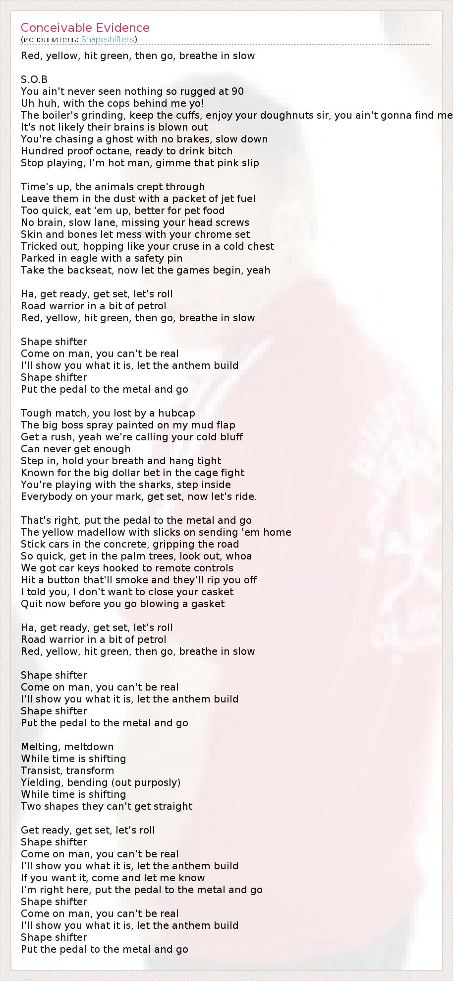 А как ты думаешь, о чем песня "Conceivable Evidence" ?