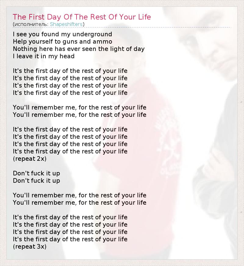 А как ты думаешь, о чем песня "The First Day Of The Rest Of Your Life" ?