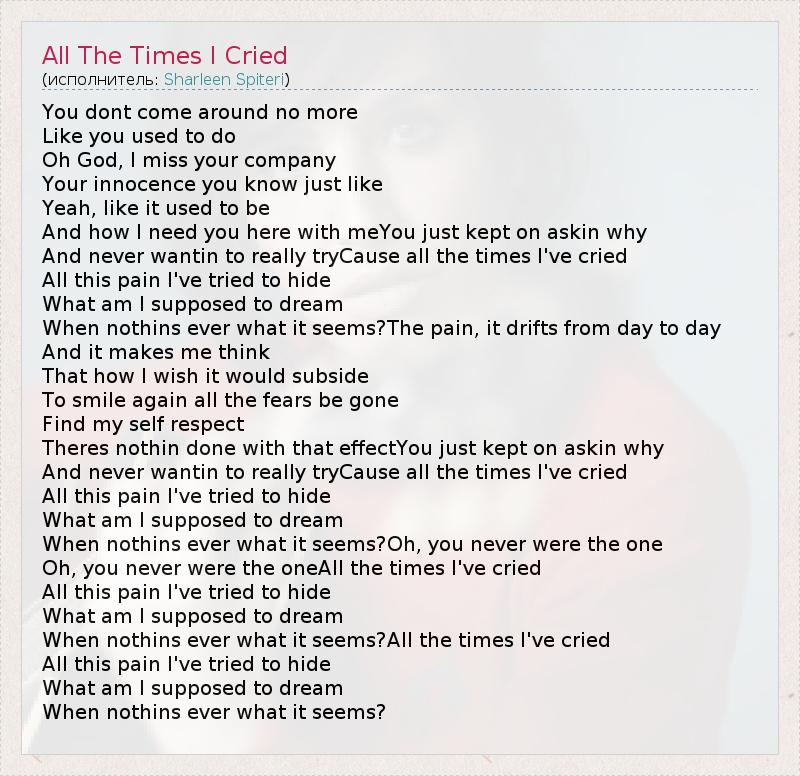 А как ты думаешь, о чем песня "All The Times I Cried" ?