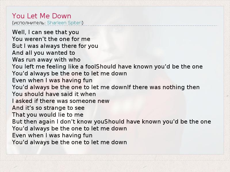 А как ты думаешь, о чем песня "You Let Me Down" ?