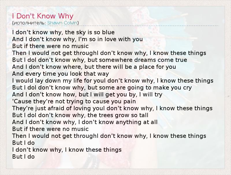 А как ты думаешь, о чем песня "I Don't Know Why" ?