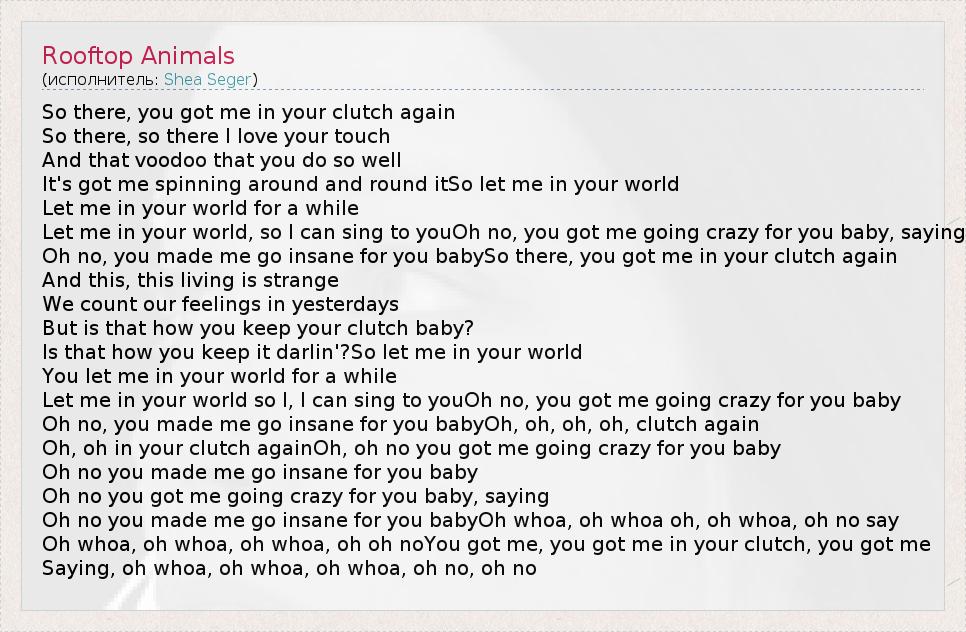А как ты думаешь, о чем песня "Rooftop Animals" ?