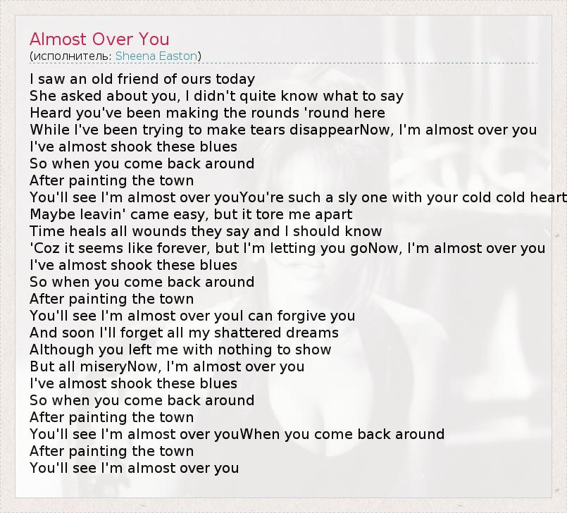 А как ты думаешь, о чем песня "Almost Over You" ?
