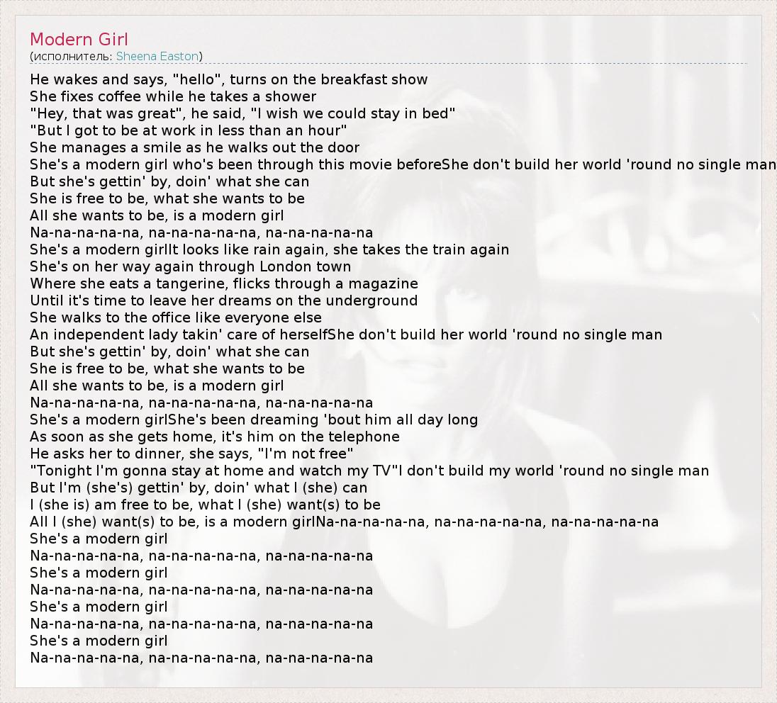 All I (she) want(s) to be, is a modern girlNa-na-na-na-na, na-na-na-na-na, na-na-na-na-na