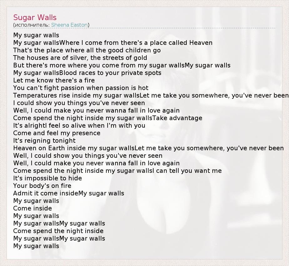 А как ты думаешь, о чем песня "Sugar Walls" ?