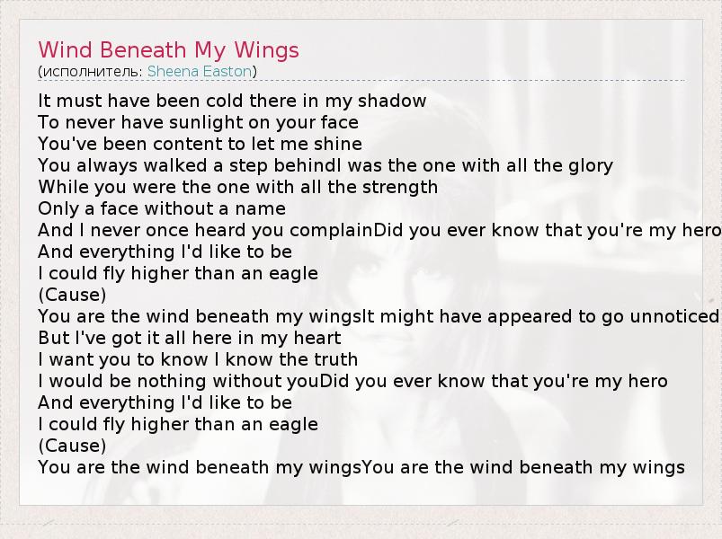 А как ты думаешь, о чем песня "Wind Beneath My Wings" ?