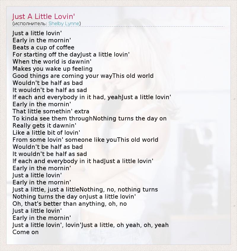 А как ты думаешь, о чем песня "Just A Little Lovin'" ?