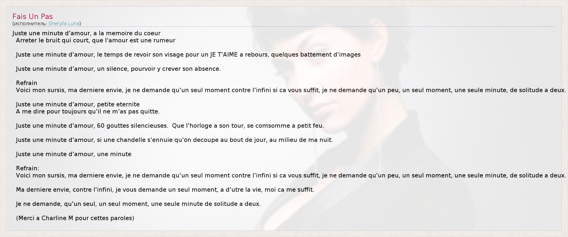 А как ты думаешь, о чем песня "Fais Un Pas" ?