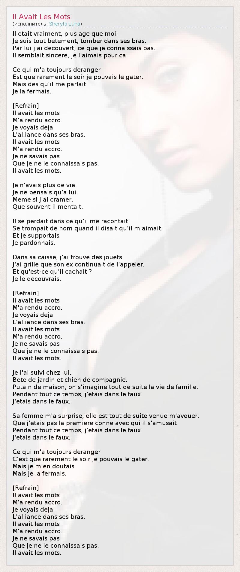 А как ты думаешь, о чем песня "Il Avait Les Mots" ?