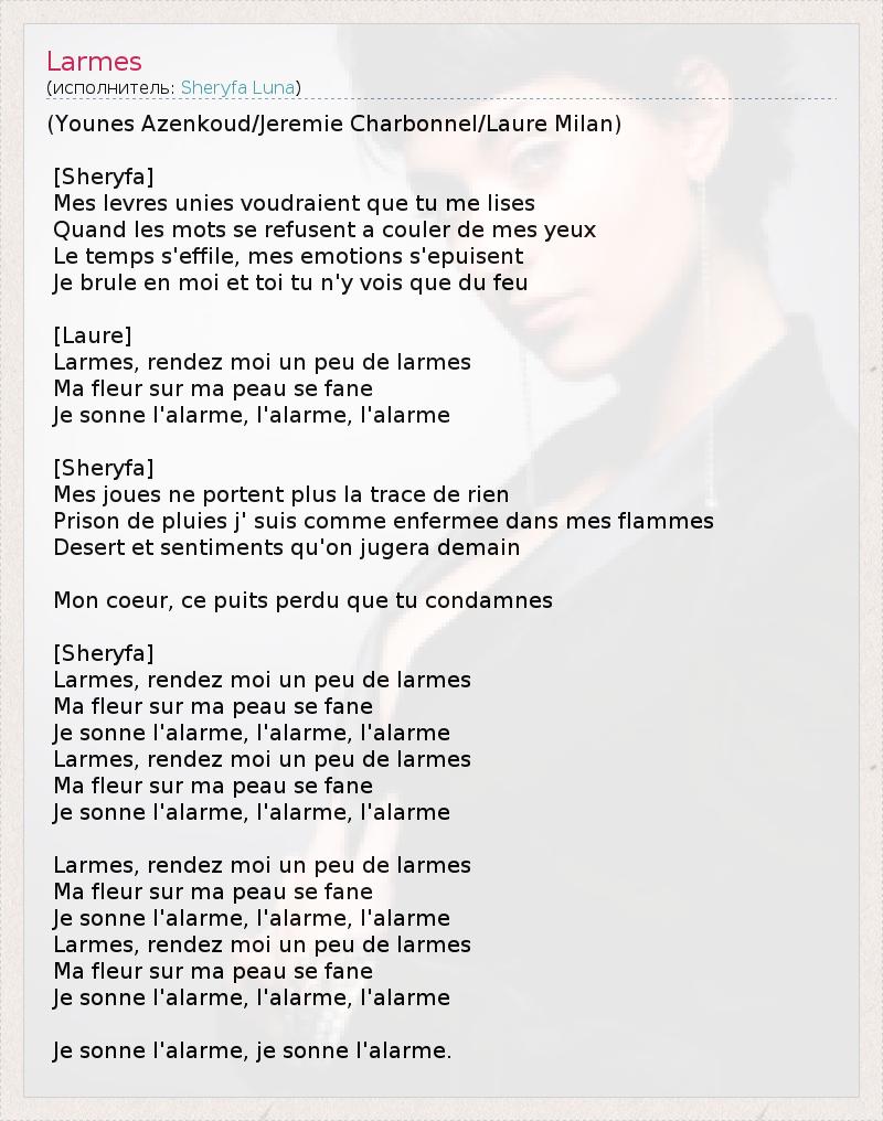 Это интересно:Sheryfa Luna (Шерифа Люна) родилась 25 января 1989 года в городе Евре (Evreux), Франция. Настоящее имя певицы - Cherifa Babouche. В октябре 2007 года стала победительницей ТВ реалити-шоу "Popstars", французского аналога "Стань звездой" и получила возможность выпустить свой альбом. Первый выпущенный студийный альбом "Sheryfa Luna" можно охарактеризовать как музыку в стиле поп R&B с романтическими... продолжение