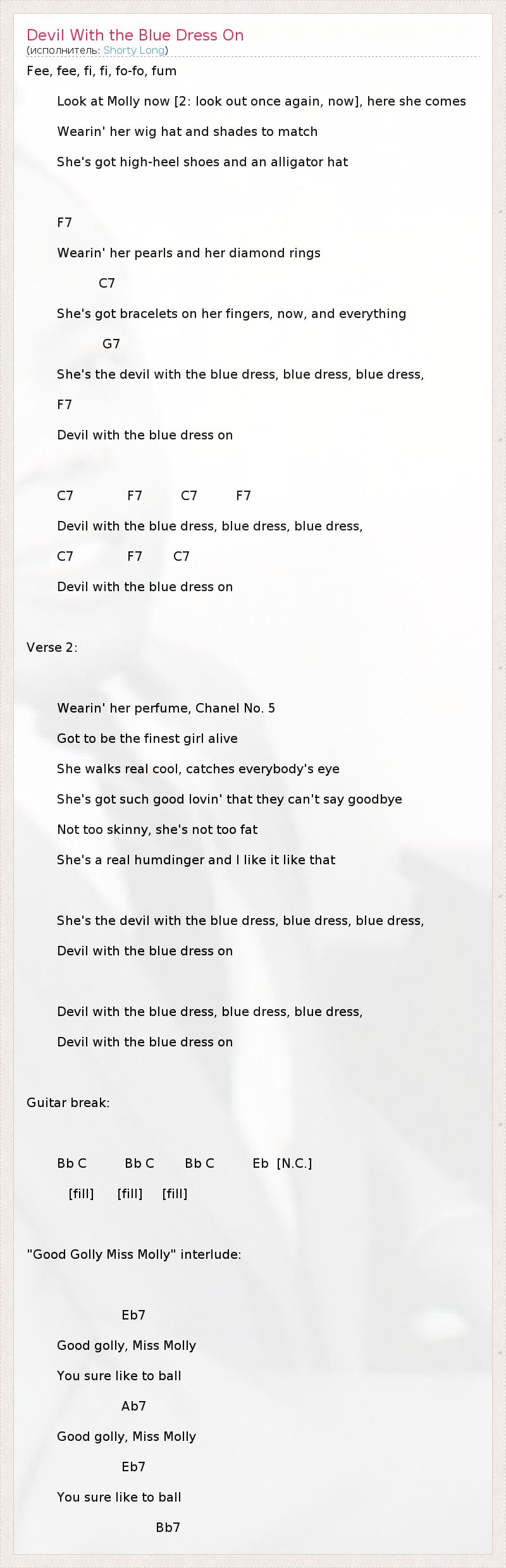 ГлавнаяИсполнителиShorty LongDevil With the Blue Dress On