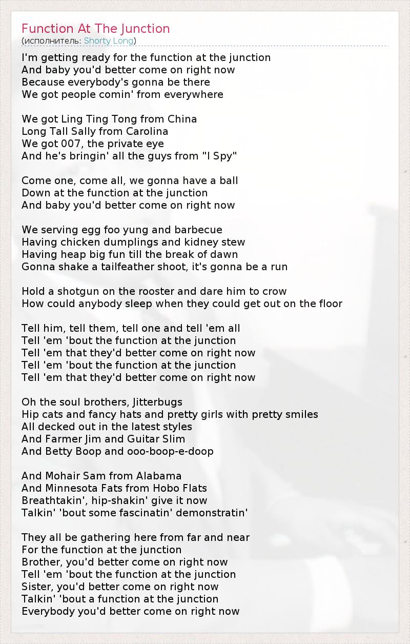 А как ты думаешь, о чем песня "Function At The Junction" ?