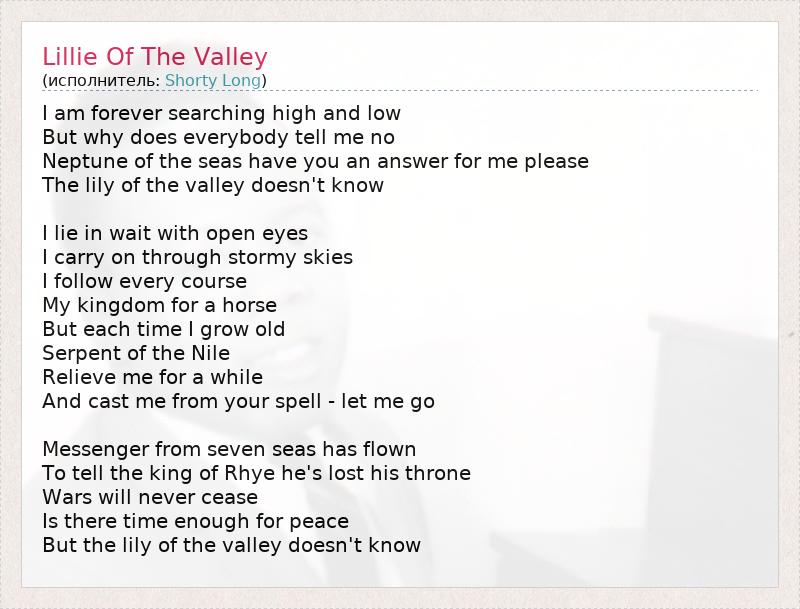 А как ты думаешь, о чем песня "Lillie Of The Valley" ?