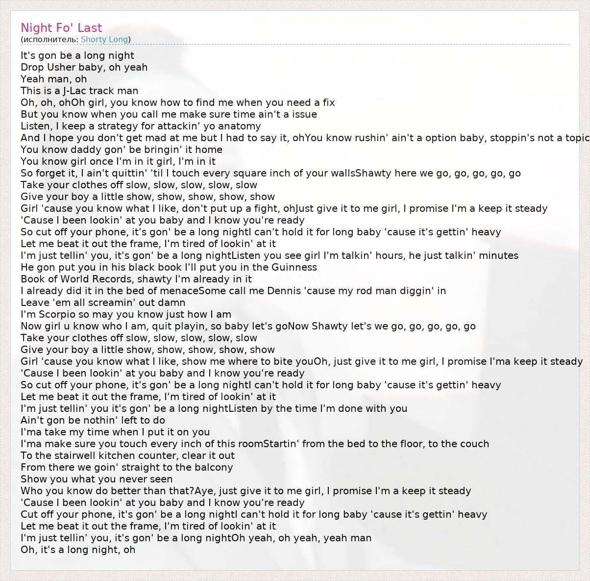 А как ты думаешь, о чем песня "Night Fo' Last" ?