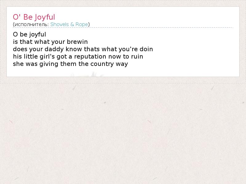 А как ты думаешь, о чем песня "O' Be Joyful" ?