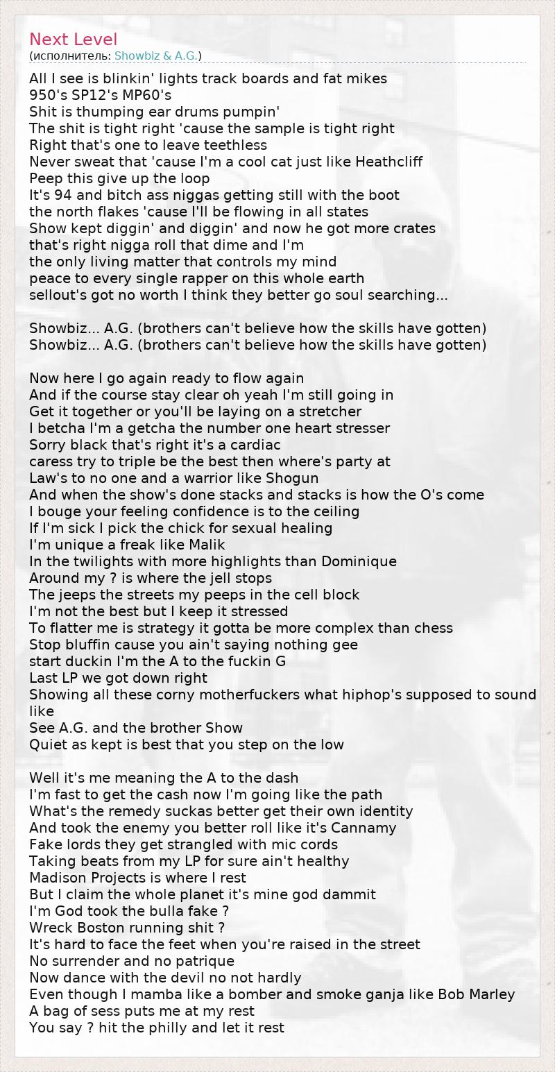 Это интересно:Showbiz & A.G. (так же известны как Show & A.G.) - американский хип-хоп дуэт из The Bronx, New York City. Showbiz - продюсер, A.G. (сокращенное от André the Giant) - рэпер. Впервые они засветились на альбоме Lord Finesse "Funky Technician" в 1990 году. Show & A.G. - участники легендарной команды Diggin' in the Crates (D.I.T.C.) вместе с Lord Finesse, Diamond D, Fat Joe, O.C., Buckwild и ныне покойным Big L. Первым полноценным релизом дуэта стал EP "Soul Clap", выпущенный в... продолжение