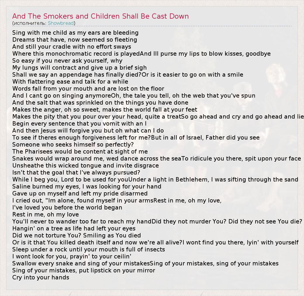 А как ты думаешь, о чем песня "And The Smokers and Children Shall Be Cast Down" ?
