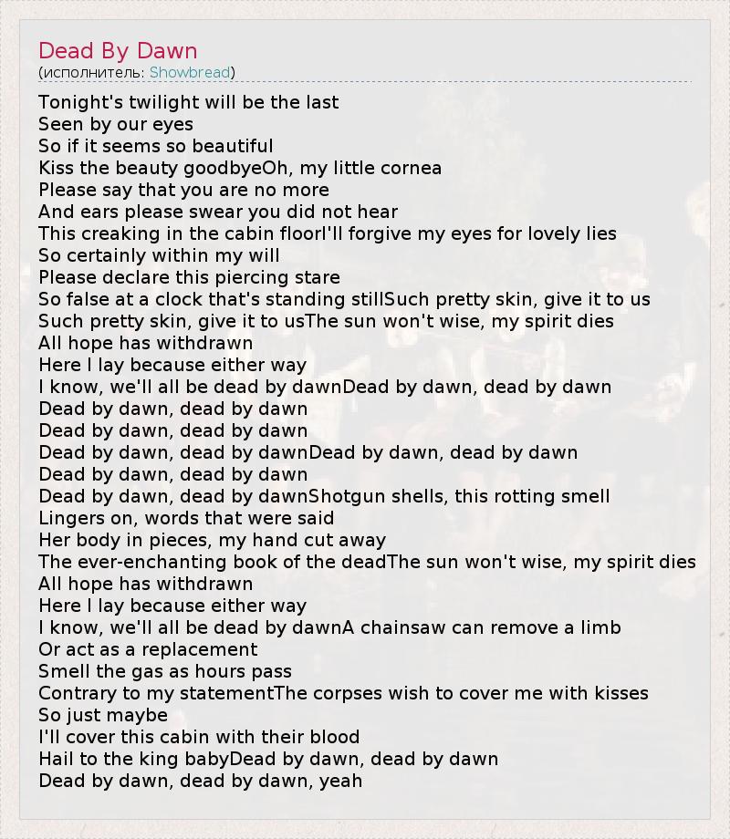 А как ты думаешь, о чем песня "Dead By Dawn" ?