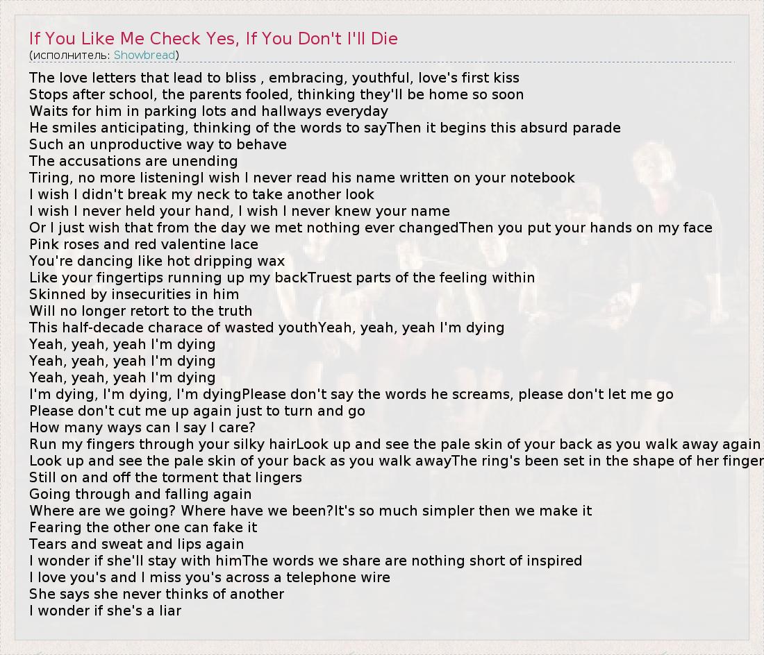 А как ты думаешь, о чем песня "If You Like Me Check Yes, If You Don't I'll Die" ?
