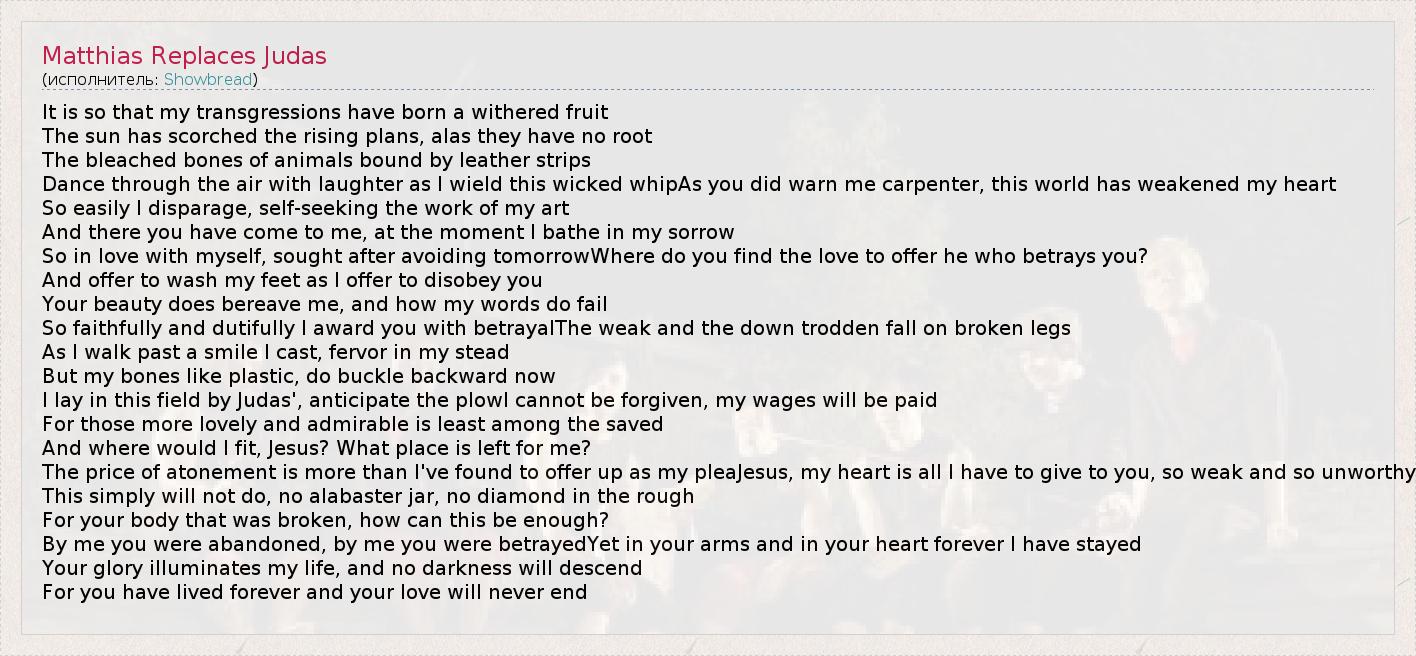 А как ты думаешь, о чем песня "Matthias Replaces Judas" ?