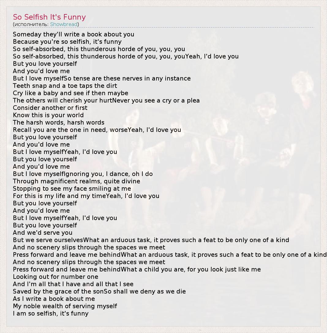 А как ты думаешь, о чем песня "So Selfish It's Funny" ?
