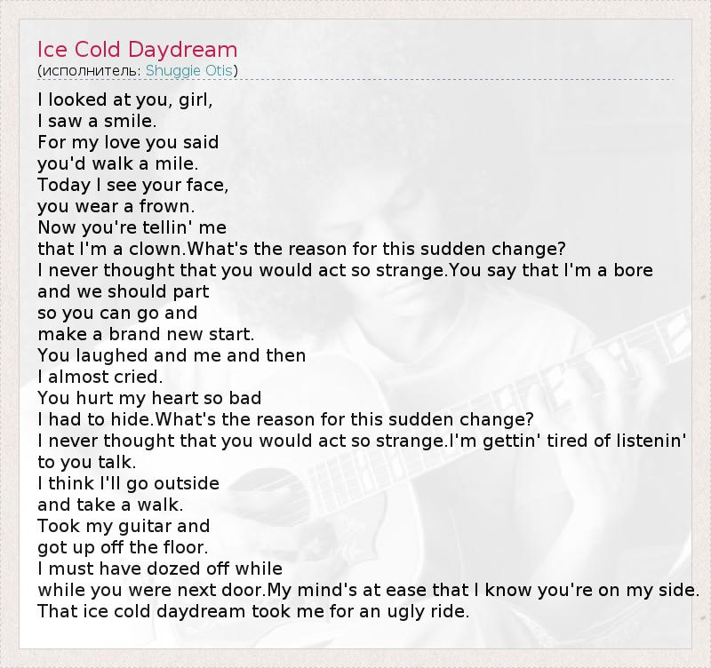 А как ты думаешь, о чем песня "Ice Cold Daydream" ?