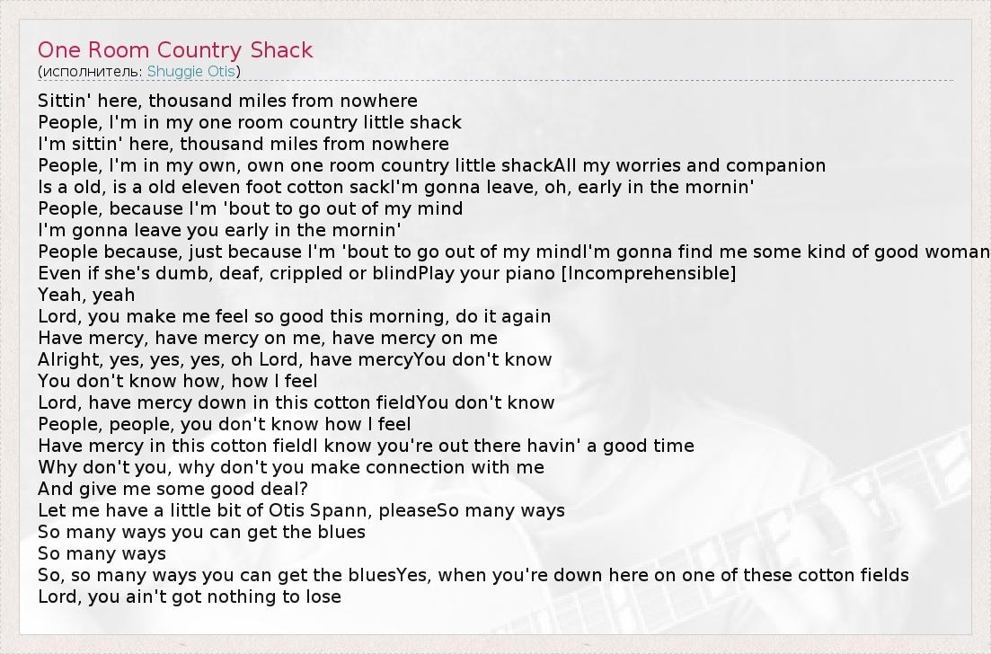 А как ты думаешь, о чем песня "One Room Country Shack" ?