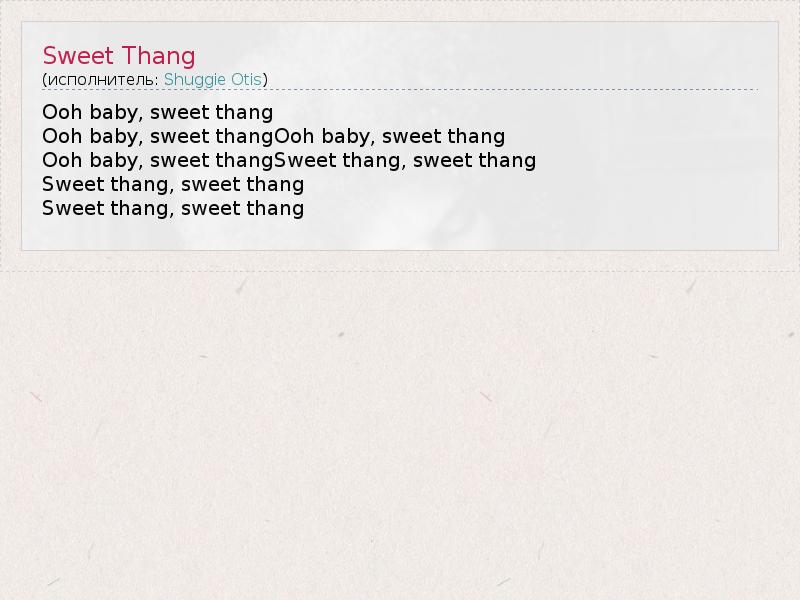 А как ты думаешь, о чем песня "Sweet Thang" ?