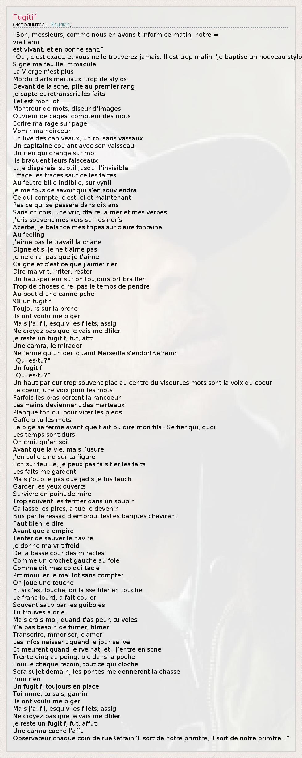 А как ты думаешь, о чем песня "Fugitif" ?