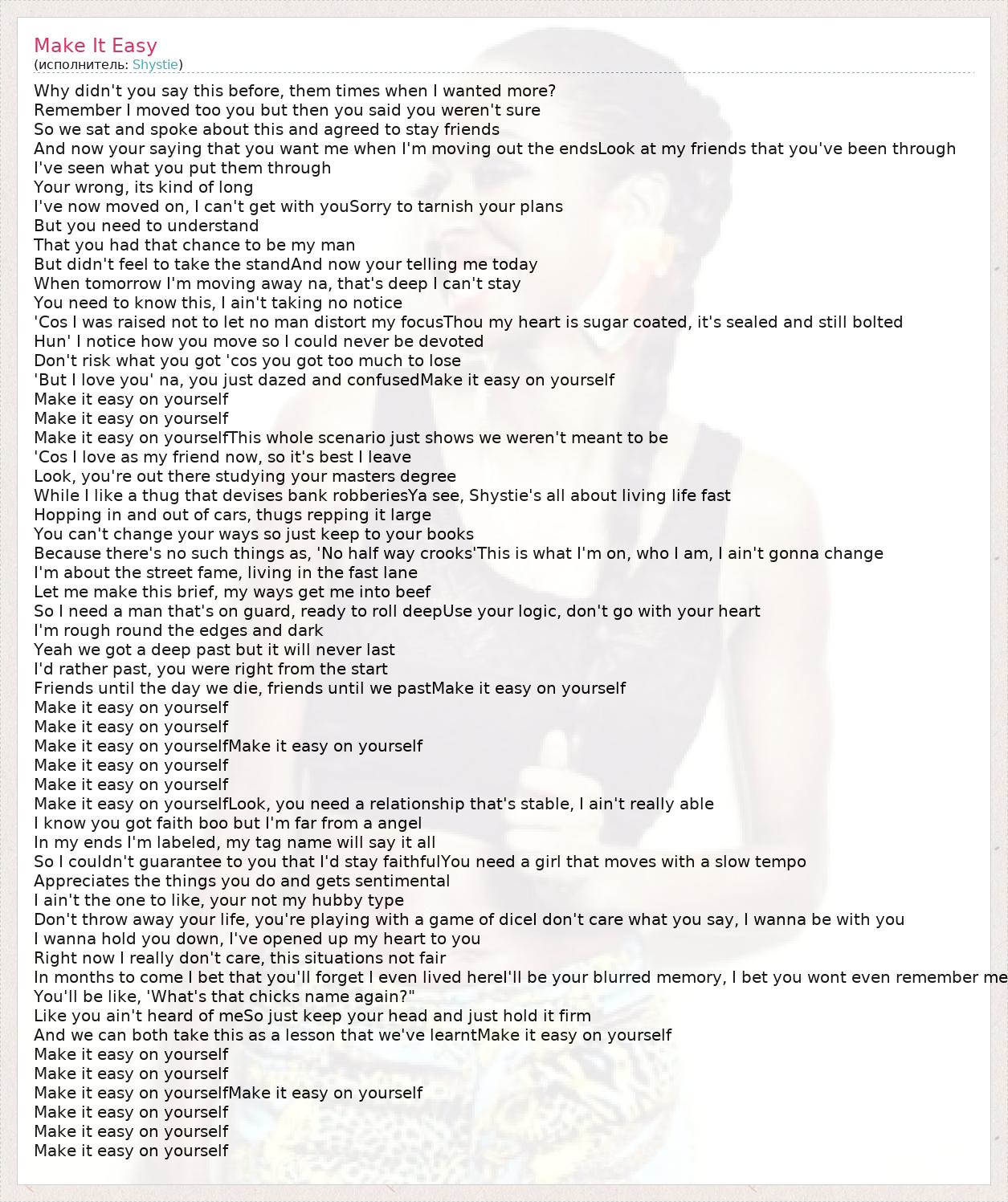 А как ты думаешь, о чем песня "Make It Easy" ?