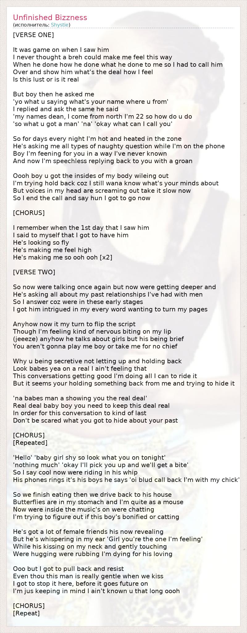 А как ты думаешь, о чем песня "Unfinished Bizzness" ?