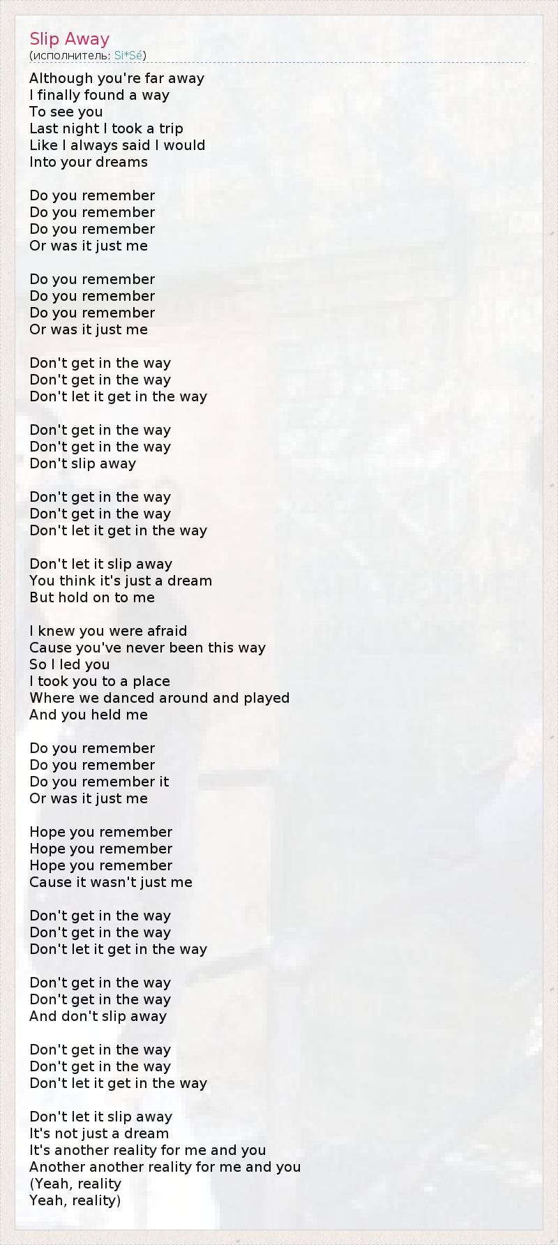 А как ты думаешь, о чем песня "Slip Away" ?