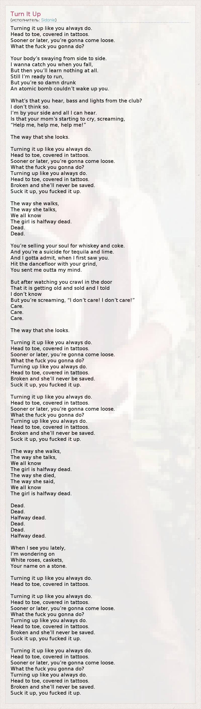 А как ты думаешь, о чем песня "Turn It Up" ?