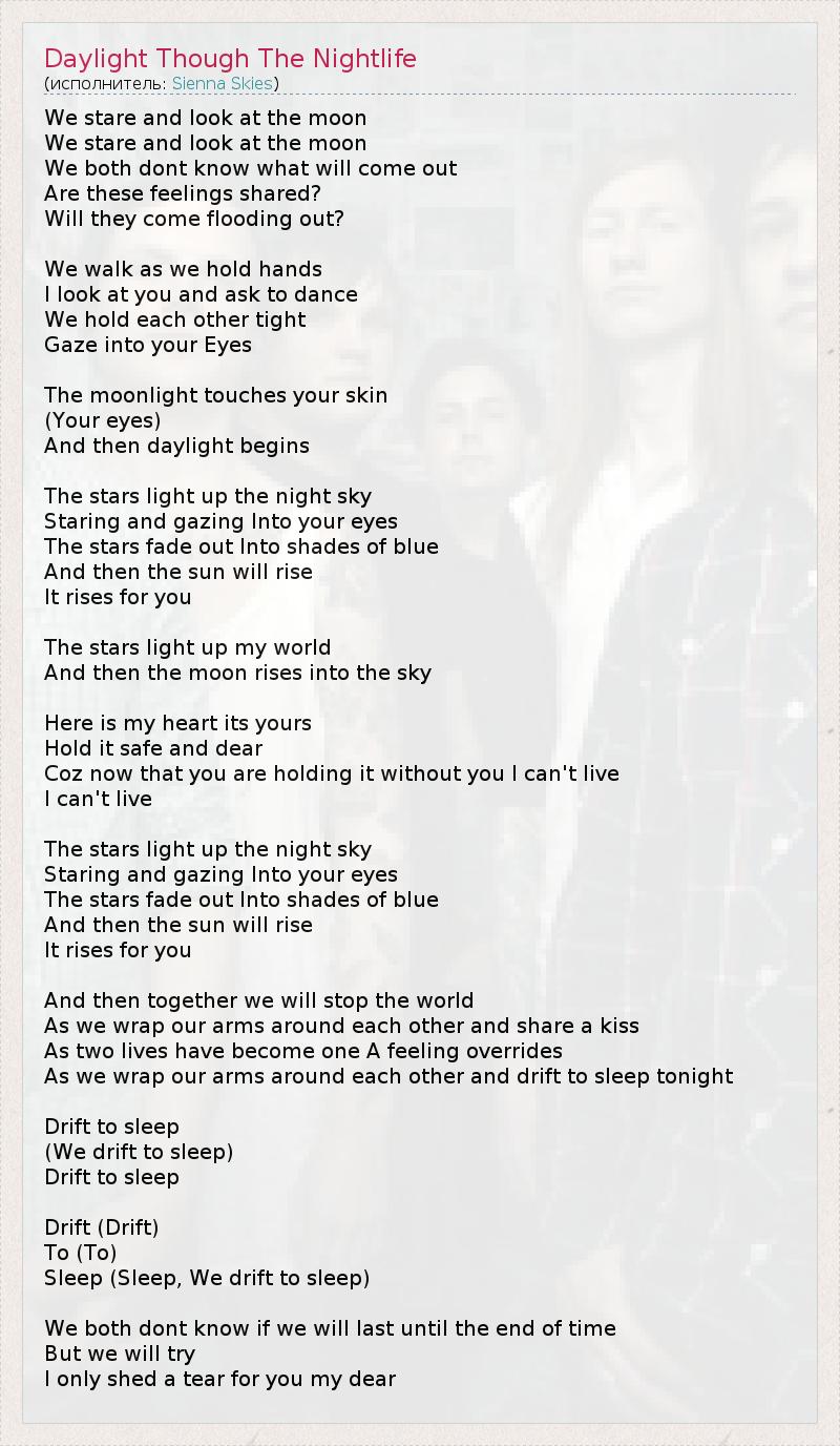 А как ты думаешь, о чем песня "Daylight Though The Nightlife" ?