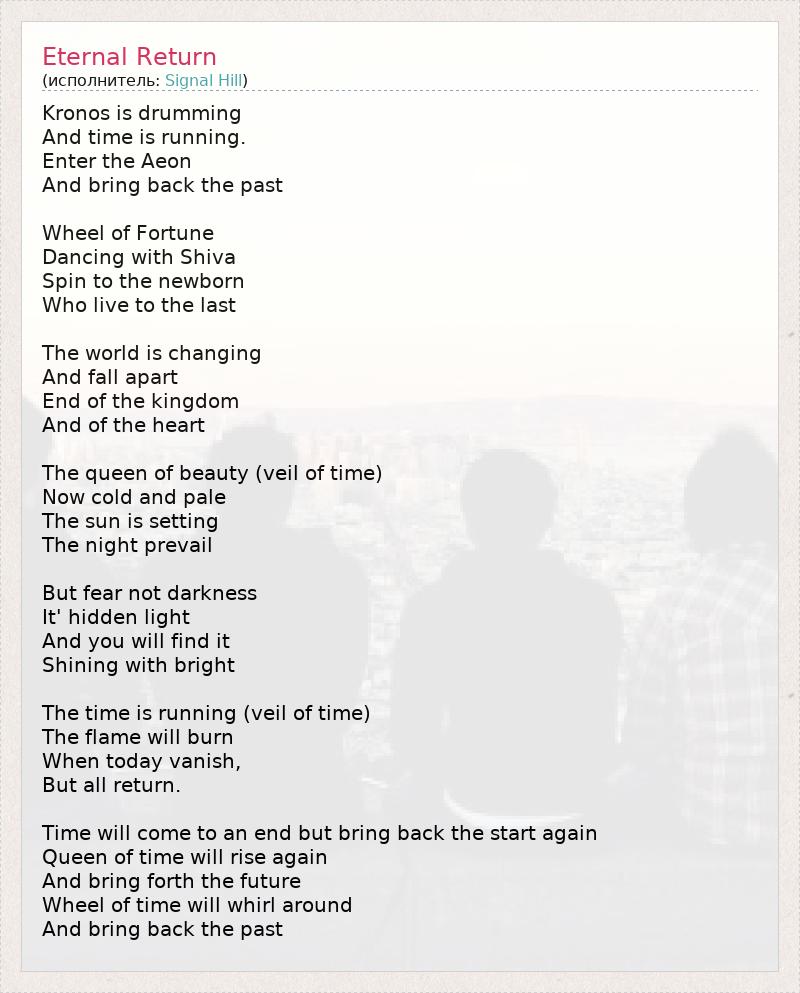 А как ты думаешь, о чем песня "Eternal Return" ?