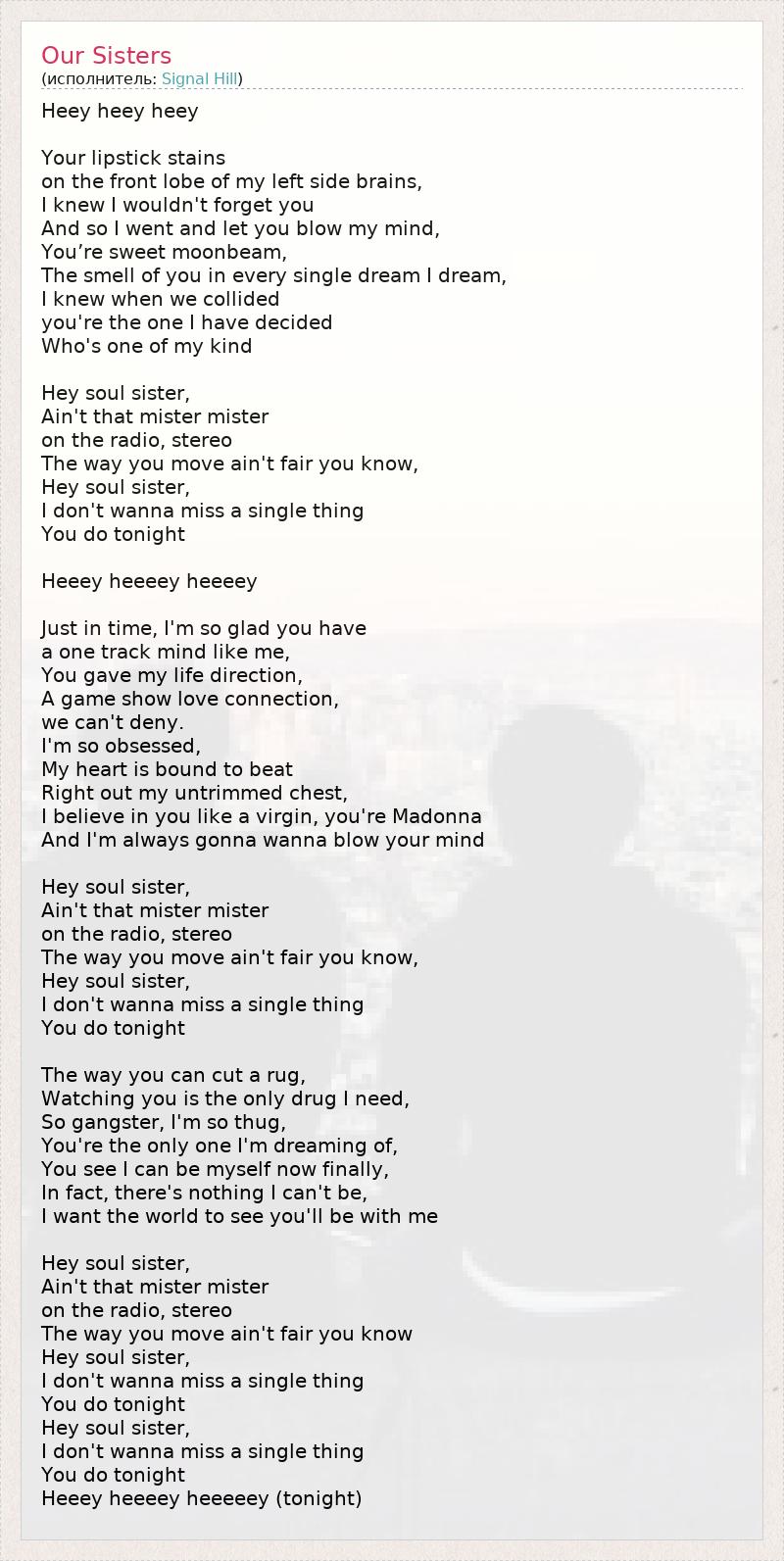 А как ты думаешь, о чем песня "Our Sisters" ?