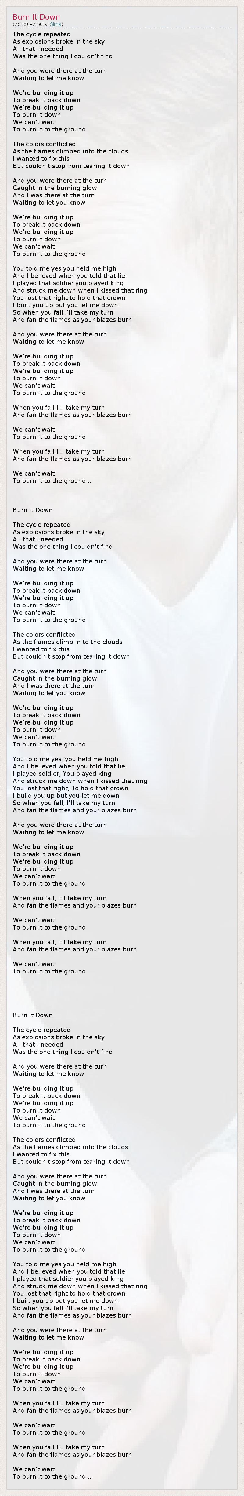 А как ты думаешь, о чем песня "Burn It Down" ?